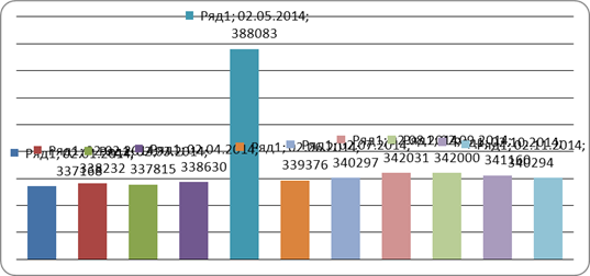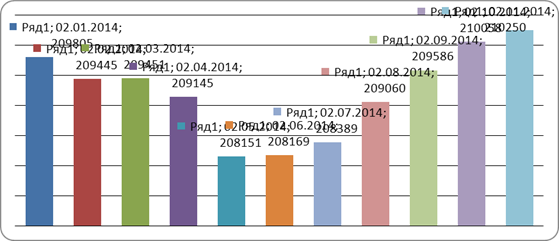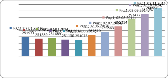 Динамика количества вкладчиков фонда по обязательным пенсионным взносам за 11 месяцев 2010 года представлена на Рисунке 14.