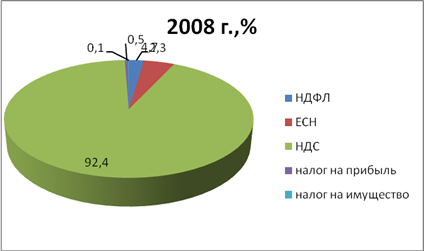 Рисунок 2.2.2 Процентное соотношение начисленных налогов в 2008 г.