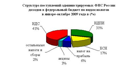 Основная масса администрируемых ФНС России доходов федерального бюджета обеспечена поступлениями НДС (41%), налога на добычу полезных ископаемых (31%), ЕСН (17%) и налога на прибыль (6%).