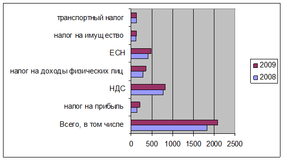 Для наглядности структуры и динамики налоговых платежей ООО «Триэс - Новосибирск» за период 2008 – 2009 г.г. представим в виде гистограммы (рис. 2.2).