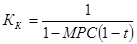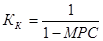показывает, насколько возрастает равновесный уровень дохода в результате роста государственных и других автономных (т.е. независимых от величины дохода Y) расходов на единицу.