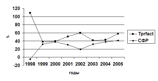 В рассматриваемом периоде средний Тprfac равен 47,3% СФ?, размах показателя составляет 23% СФР. Снижение средней величины Тprfac могло послужить одним из факторов роста.