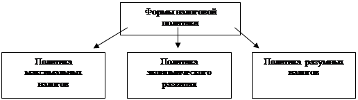 Третья форма налоговой политики – политика разумных налогов представляет собой нечто среднее между первой и второй формами. Суть ее состоит в установлении достаточно высокого уровня налогообложения как юридических, так и физических лиц при одновременно реальной социальной защите граждан, наличии значительного числа государственных социальных программ.