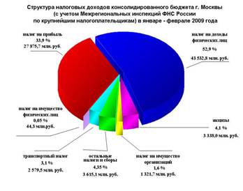 Рисунок 2. Структура налоговых доходов г. Москвы в январе-феврале 2009 года и место в ней налога на имущество физических лиц.