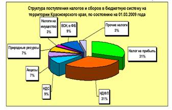 Для сравнения рассмотрим информацию о поступлении налога в местные бюджеты Красноярского края. За январь-февраль 2009 года на территории Красноярского края поступило в бюджетную систему 20,5 млрд. рублей налоговых платежей и других доходов.