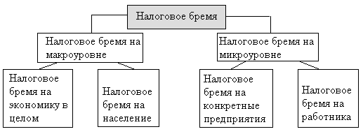 Каковы же основные аспекты исчисления налогового бремени в экономике? Оно осуществляется на двух уровнях: макроуровне и микроуровне, что отражается на следующем рисунке.