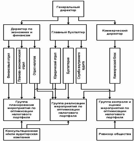При построении организационной структуры налогового планирования необходимо исходить из двойственности данного процесса. С одной стороны, планирование налоговых платежей является составляющей деятельности по финансовому планированию, а значит должно проходить в рамках последней, внутри той организационной структуры, участники которой разрабатывают финансовые планы.