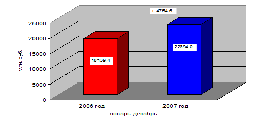 Показатели поступления администрируемых УФНС России по Приморскому краю доходов в краевой бюджет Приморского края в январе – декабре 2006 - 2007 гг. представлены на рис. 2.1.