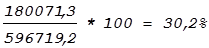 Теперь можно переходить непосредственно к расчету налоговой нагрузки на ООО «Стройсервис». Для расчета налоговой нагрузки по всем налогам используем формулу (2). Сумма всех налогов при ставке налога на прибыль 35% равна 586 019,3, а при ставке 30% - 562590,9. Налоговая нагрузка на предприятие соответственно при ставке 35% составит: