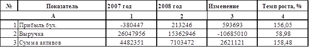 Основываясь на этих двух коэффициентах, можно сделать вывод, что структура баланса предприятия средне удовлетворительна, но тем не менее предприятие классифицируется как неплатёжеспособное.