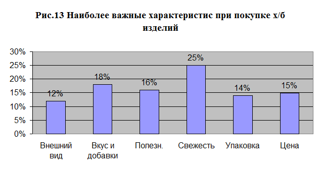 В ходе проведения маркетинговых исследований был составлен график наиболее важных характеристик при покупке хлебобулочных изделий.