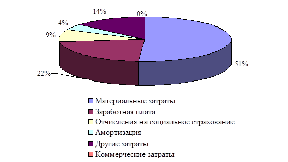 Рис. 7. Структура себестоимости затрат по экономическим элементам в 2009 г.