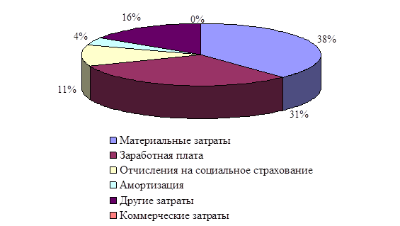 Единственной статьей, по которой произошло значительное уменьшение затрат в структуре себестоимости, является статья материальных затрат (-13,77%), что свидетельствует об использовании резервов снижения себестоимости в 2009 г., которые позволили уменьшить долю материальных затрат в себестоимости продукции.