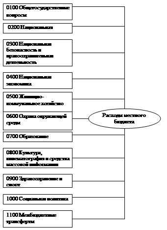 Формирование расходов бюджетов всех уровней бюджетной системы Российской Федерации осуществляется в соответствии с расходными обязательствами, обусловленными установленным законодательством Российской Федерации, разграничением полномочий федеральных органов государственной власти, органов государственной власти субъектов Российской Федерации и органов местного самоуправления. Функциональная структура расходов местного бюджета отражена на рисунке 2.
