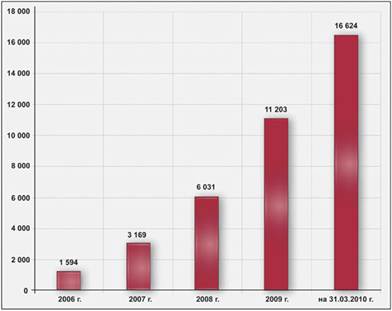 Рис. 3. Динамика роста пенсионных накоплений под управлением НПФ "ЛУКОЙЛ-ГАРАНТ" (млн. руб.)