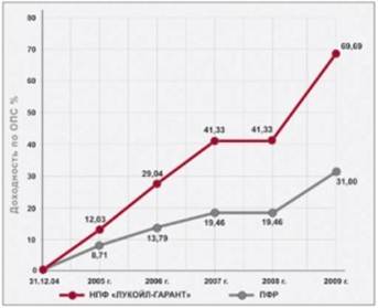 Такая политика делает услуги НПФ «ЛУКОЙЛ-ГАРАНТ» более выгодными по сравнению с недавно созданным «расширенным инвестиционным портфелем» государственной управляющей компании – Внешэкономбанка. Ведь для ВЭБа остался недоступным самый высокодоходный (особенно в период «послекризисного» роста) финансовый инструмент – акции российских эмитентов. Таким образом, в средне- и долгосрочной перспективе доходность Внешэкономбанка будет, скорее всего, существенно ниже, чем доходность НПФ «ЛУКОЙЛ-ГАРАНТ».