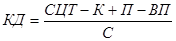 Количество денег (КД), необходимых для обращения, прямо пропорционально сумме цен товаров (СЦТ) и обратно пропорционально скорости обращения денег (С)