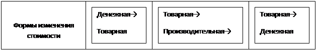 На этой стадии кругооборота авансированная стоимость снова меняет свою форму. Из производительной формы она переходит в товарную, а по вещественному составу из материальных производственных запасов вначале превращается в незаконченную продукцию, а затем - в готовые изделия (ПЗ−П−ГП).