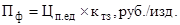 где Цп.ед – стоимость покупных комплектующих изделий, полуфабрикатов, предусмотренных конструкцией изделия, руб.