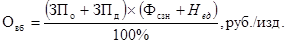 Овб – отчисления в бюджет и внебюджетные фонды от средств на оплату труда, руб/изд.;