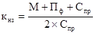кнз=(145200+485140+82500)/(2*485140)=0,73 ;
