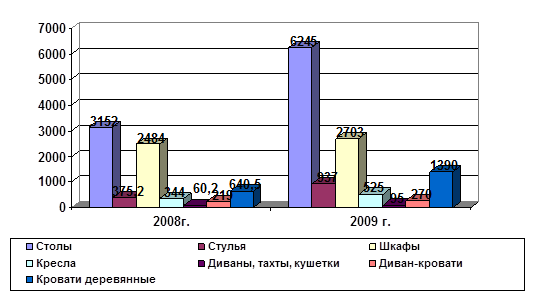 Рис 2.1. Динамика продаж мебели по категориям (2008-2009гг).
