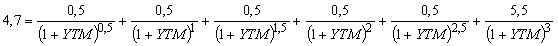 Расхождение в 1,5 процентных пункта (24,177 – 22,68) является довольно значительным, но оно объясняется еще и тем, что при использовании приближенной формулы не была учтена фактическая периодичность выплаты купона (2 раза в год). Если бы по условию займа купонные выплаты производились только 1 раз в год (по 1 тыс. рублей), то YTM такого денежного потока составила бы 22,982%, то есть всего на 0,3 процентных пункта больше приближенного значения полной доходности (22,982 – 22,68). После налоговой корректировки это расхождение стало бы еще меньше: