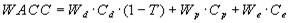 - соответственно доли заемных средств, привилегированных акций, собственного капитала (обыкновенных акций и нераспределенной прибыли),