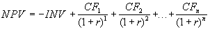 где INV - суммарный объем инвестиций, r = WACC, а денежные потоки CF1, CF2, ., CFn содержатся в последней строке таблицы 1.