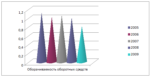 Тенденцию к увеличению за 2005-2009 гг. обнаруживает показатель рентабельности оборотного капитала. В 2005 г. на каждый рубль оборотного капитала было получено 3,6 коп. чистой прибыли, в 2009 г. рентабельность оборотного капитала увеличилась до 7,3%.