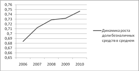 рис. 2. Динамика роста доли безналичных средств в среднем.