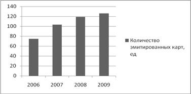 Во многом благодаря универсальности платежной карты, адекватно отвечающей потребностям розничного бизнеса, возможно решать различные задачи не только в сфере розничных услуг, но и в социальной, бюджетной сферах. Поэтому кредитными организациями, развивающими свои розничные банковские услуги, отдается предпочтение (не только в России, но и за рубежом) карточному направлению. В настоящее время более 60% банков осуществляет эмиссию и платежных карт (709 кредитных организаций из 1136), количество эмитированных ими банковских карт (данные на 01.12.2009) составило 126 млн.