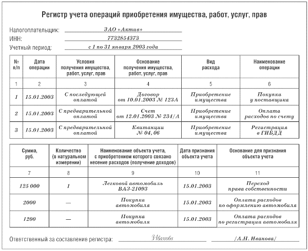 Рисунок 1 - Регистр учета операций приобретения имущества, работ, услуг, прав.