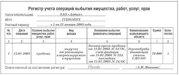 Рисунок 2 - Регистр учета операций выбытия имущества, работ, услуг, прав.