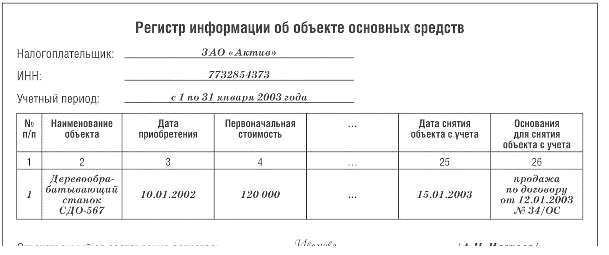 Рисунок 4 - Регистр информации об объекте основных средств.