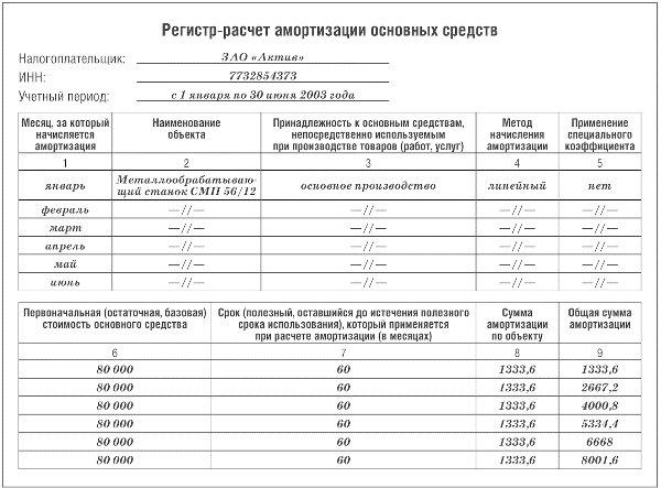 Амортизация по станку должна начисляться с января 2003 года. (Рисунок 5)