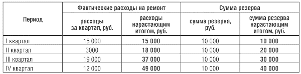 По итогам года сумма расходов на ремонт превышает резерв на 9000 руб. (49 000 - 40 000).