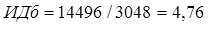 4. Индекс доходности, рассчитанный через отношение суммы настоящей стоимости денежных поступлений (сумма значений по строке 9 из табл.1,2 соответственно для проектов А, Б) к величине инвестиций.