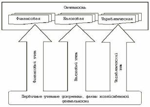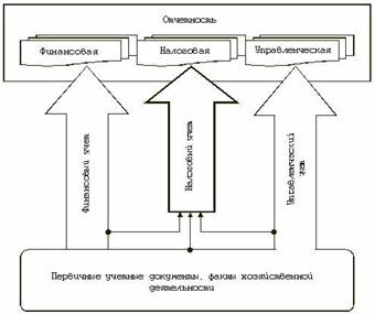 На сегодняшний день рассматривать налоговый учет как нечто обособленное от бухгалтерского было бы несправедливо. Слишком тесна методическая и документальная связь между ними. Не вызывает сомнений, что бухгалтерский и налоговый учет на предприятии являются предметом деятельности одних и тех же специалистов. На основании этого можно утверждать, что налоговый учет является одним из разделов бухгалтерского учета наряду с финансовым и управленческим учетом. Остается только определить ему место в бухгалтерии предприятия.
