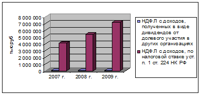 Рисунок 3. – Динамика основных статей доходов НДФЛ в консолидированный бюджет РФ по Курской области 01.01.2007-01.01.2009г.