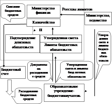 Процесс расходования бюджетных средств также подробно описан в Бюджетном кодексе и может быть представлен в виде схемы на рис. 1.3.