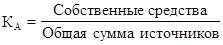 Минимальное значение этого коэффициента принимается на уровне 0,6. Если КА>0,6-это означает, что все обязательства предприятия могут быть покрыты её собственными средствами.