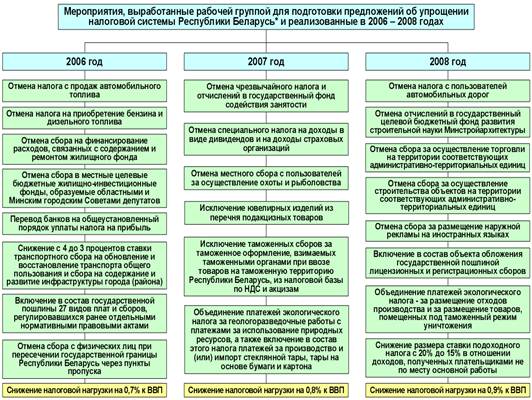 В целом в Беларуси за 2006–2010 годы будет отменено 20 налогов.