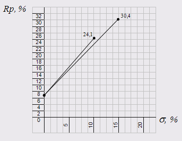 Ожидаемая доходность рыночного портфеля = 25, безрисковая ставка = 7, значение бета-коэффициента для акций 1 и 2 соответственно = 0.95 и 1.3 . Каково уравнение этой прямой? Нарисовать график, если риск первой ЦБ равен 10%, риск второй ЦБ – 15 %.