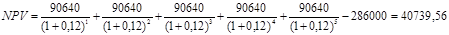 NPV > 0, проект принимается.
