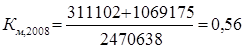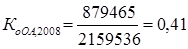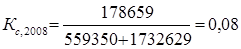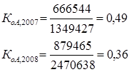 В 2008 году показатель составил 0,36 копеек, это означает, что на 1 рубль стоимости всех активов мы получаем 36 копеек дохода. Это меньше чем в 2007 году на 13 копеек.