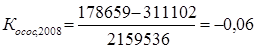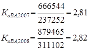 Коэффициент оборачиваемости внеоборотных активов показывает низкий уровень эффективности использования основных средств, так как в 2008 году на 1 рубль стоимости основных средств всего реализовано продукции на 2 рубля 82 копейки. Также у организации нет тенденции к ускорению оборачиваемости.