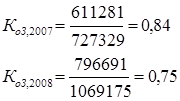Коэффициент оборачиваемости оборотных активов является общим измерителем эффективности использования текущих активов и показывает, что 41 копейка продукции реализована в расчете на 1 рубль оборотных активов в 2008 году. Это значит, что оборотные активы используются не эффективно.