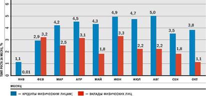 Рост розничного кредита опережает рост активов российского банковского сектора: так, кредиты физлицам за период с 1 октября 2006 г. по 1 октября 2007 г. выросли на 61,2%, тогда как активы за этот период увеличились на 44,3%, а кредиты и прочие размещенные средства, представленные нефинансовым организациям, - на 51,7%.
