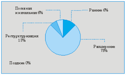 Рис. 2.4 – Распределение объемов инвестиций по стадиям, 2006 год